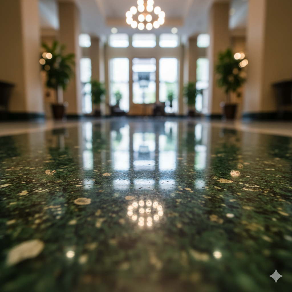 $160 m²Este granito de alto valor requiere un pulido y sellado de nivel **Premium**. Utilizamos las técnicas más avanzadas para garantizar un brillo profundo y uniforme, realzando el color y la veta natural del Verde Tikal. Somos el servicio más responsable y con la mejor puntualidad en Quintana Roo.